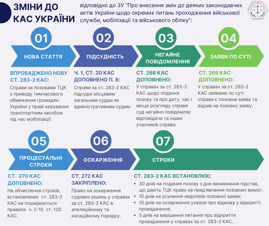 Зміни до КАС України у відповідності до прийнятого Закону України «Про внесення змін до деяких законодавчих актів України щодо окремих питань проходження військової служби, мобілізації та військового обліку» у декількох слайдах.