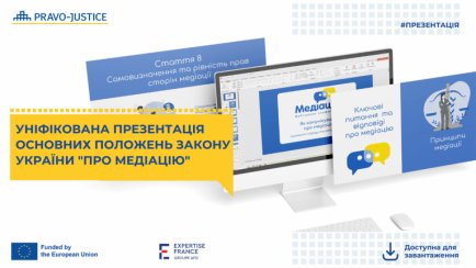 Нагадаємо, раніше Проєкт ЄС "Право-Justice" презентував Комунікаційну стратегію з медіації. Її стратегічне завдання - зробити послугу видимою та зрозумілою через уніфіковану комунікацію стейкхолдерів.