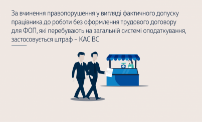 За вчинення правопорушення у вигляді фактичного допуску працівника до роботи без оформлення трудового договору для ФОП, які перебувають на загальній системі оподаткування, застосовується штраф – КАС ВС