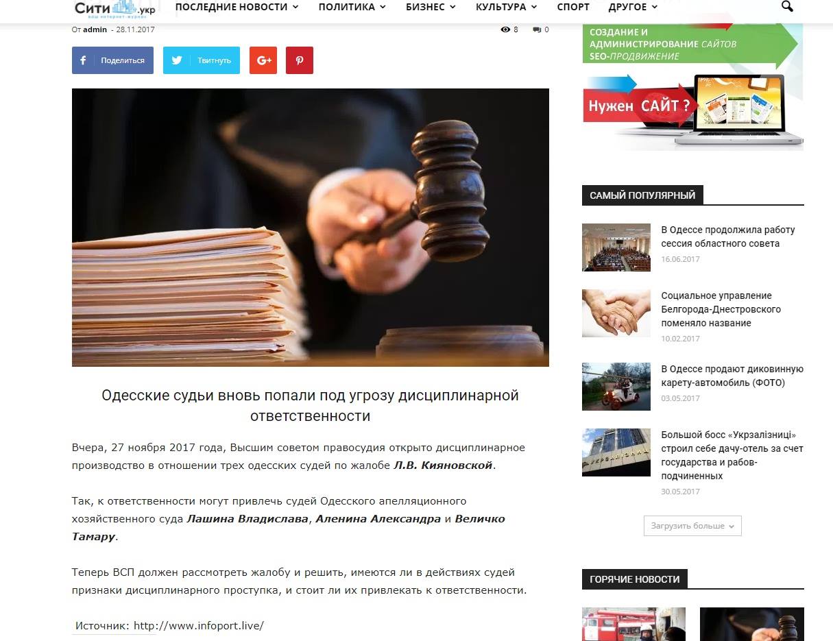 Посилання на джерела Інформації, що не відповідає дійсності: http://www.infoport.live/centr-vnimania/juridical-news/troih-odesskih-sudej-mogut-privlech-k-otvetstvennosti-kogo-na-etot-raz/