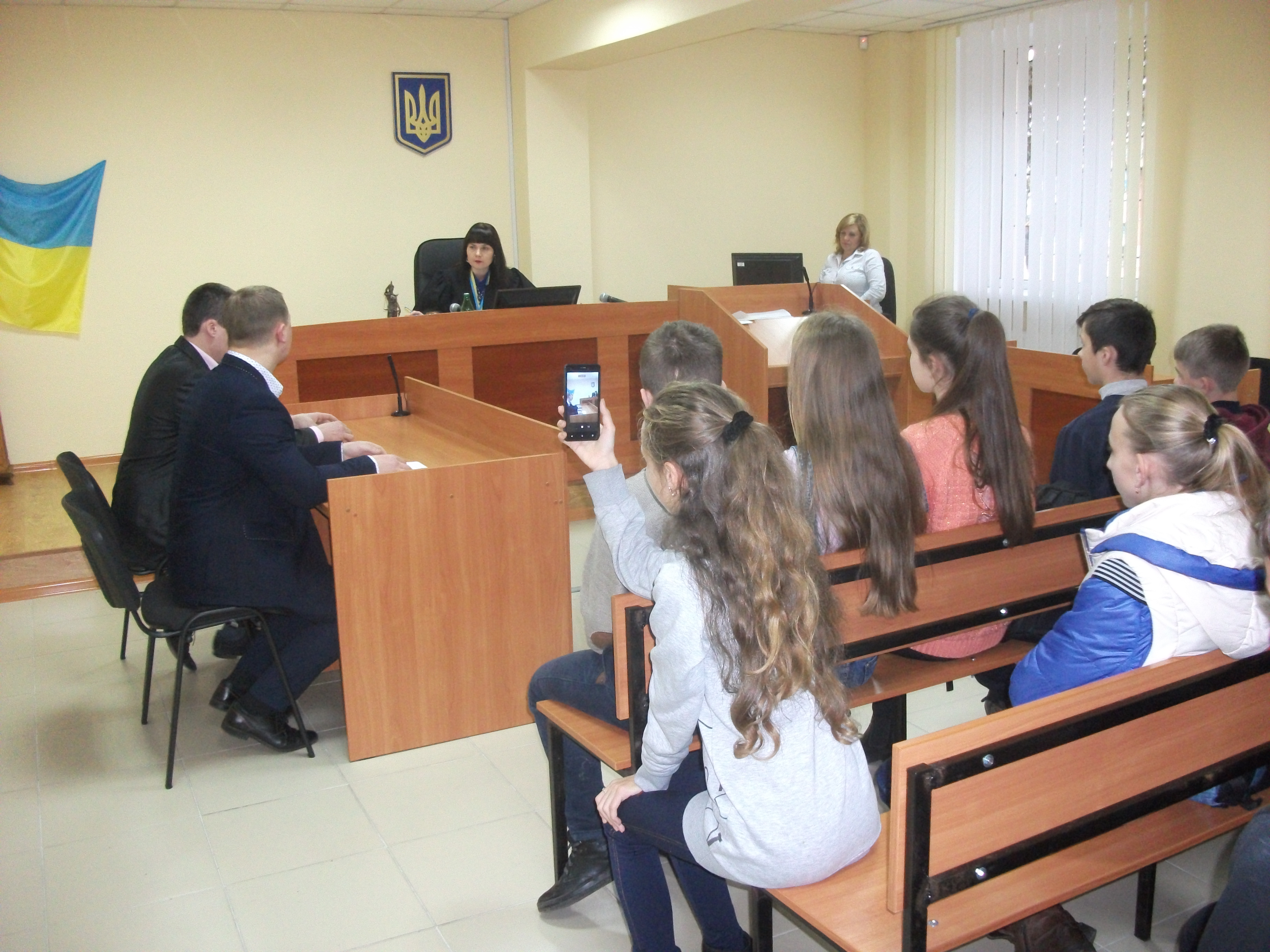 Учні із захопленням спостерігали за модельним судовим процесом.